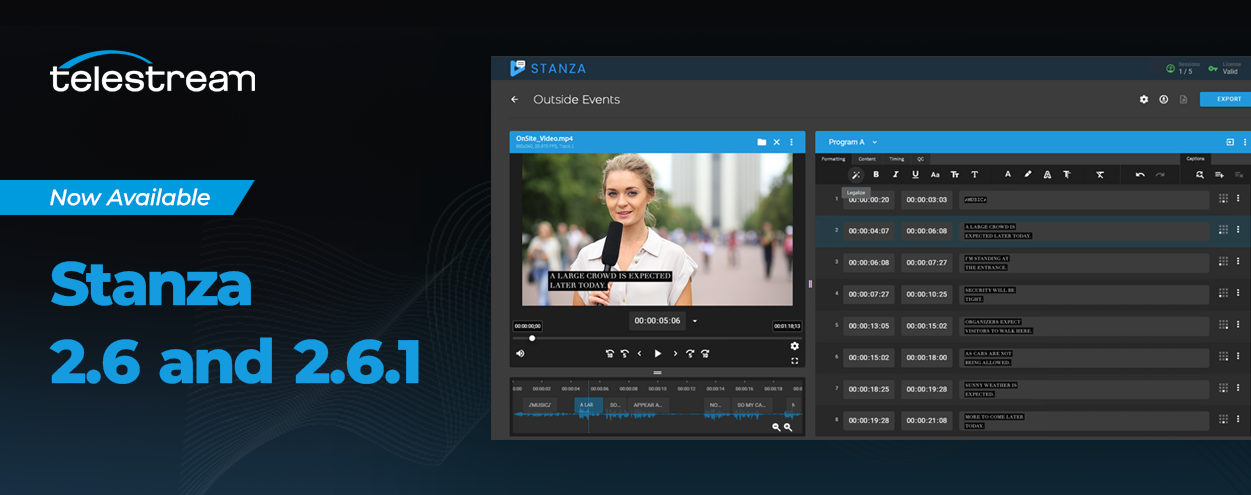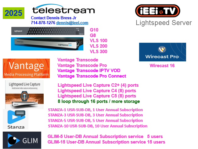 For the past 18 years we have been partnered with Telestream, a worldwide industry leader in software and hardware products for video capture and ingest; live and on-demand encoding and transcoding; captioning; playback inspection, delivery, live streaming, workflow automation, orchestration, QC, and monitoring and management of quality service and experience over networks.