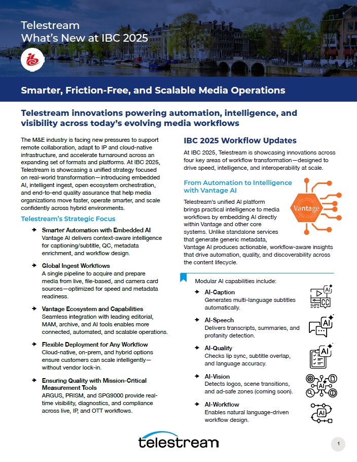 Telestream had a very successfull 2025 IBC. Click on this link for a full PDF overview: Click HERE |